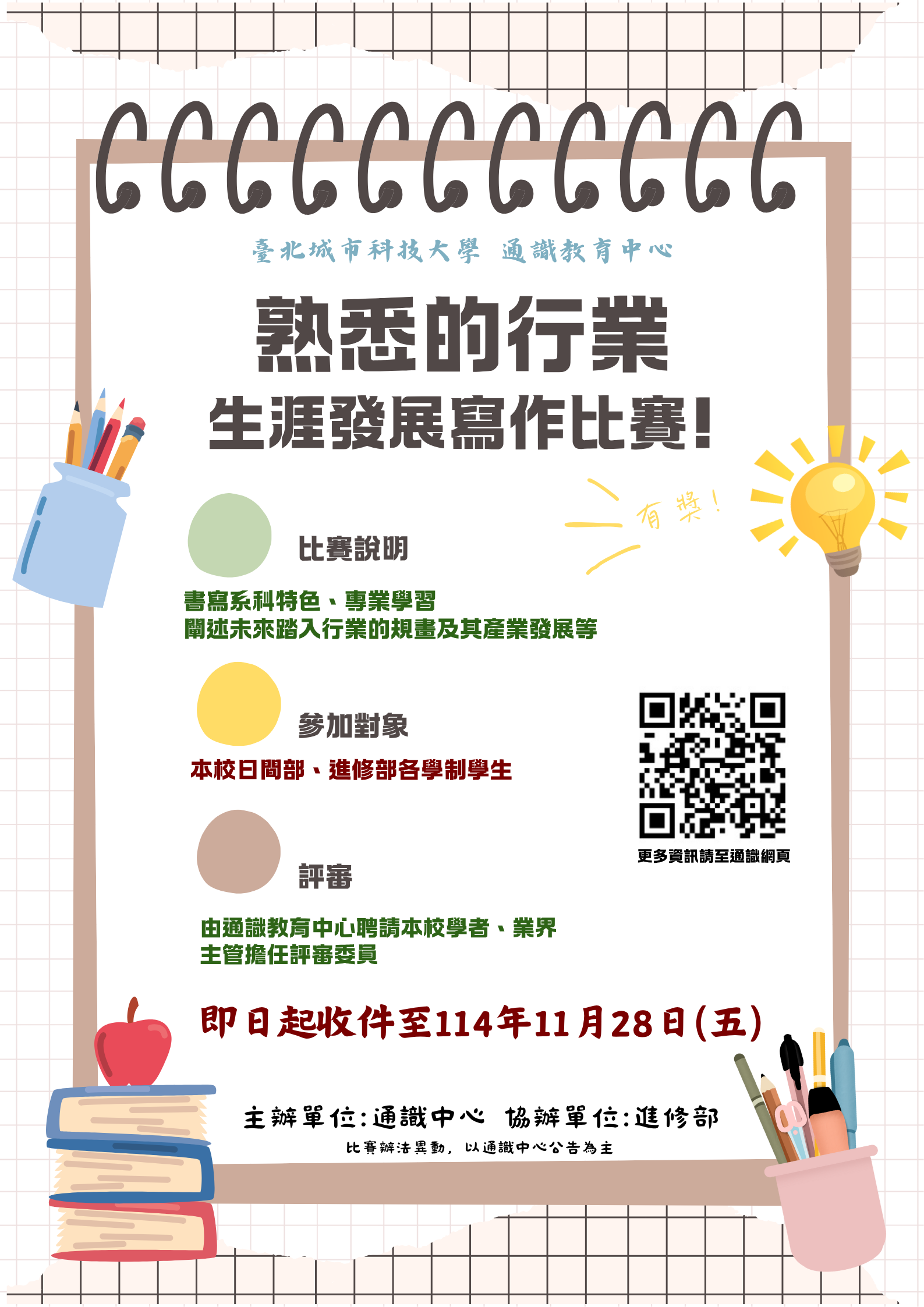 【通識】114-1「熟悉的行業」生涯發展寫作比賽
