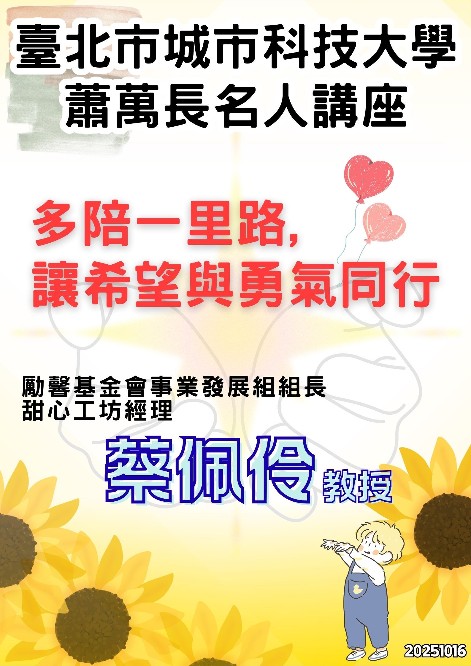 【通識】114年10月16日(四)名人講座邀請 勵馨基金會事業發展組組長 蔡佩伶教授 蒞校演講,歡迎有興趣的師生蒞臨參加!