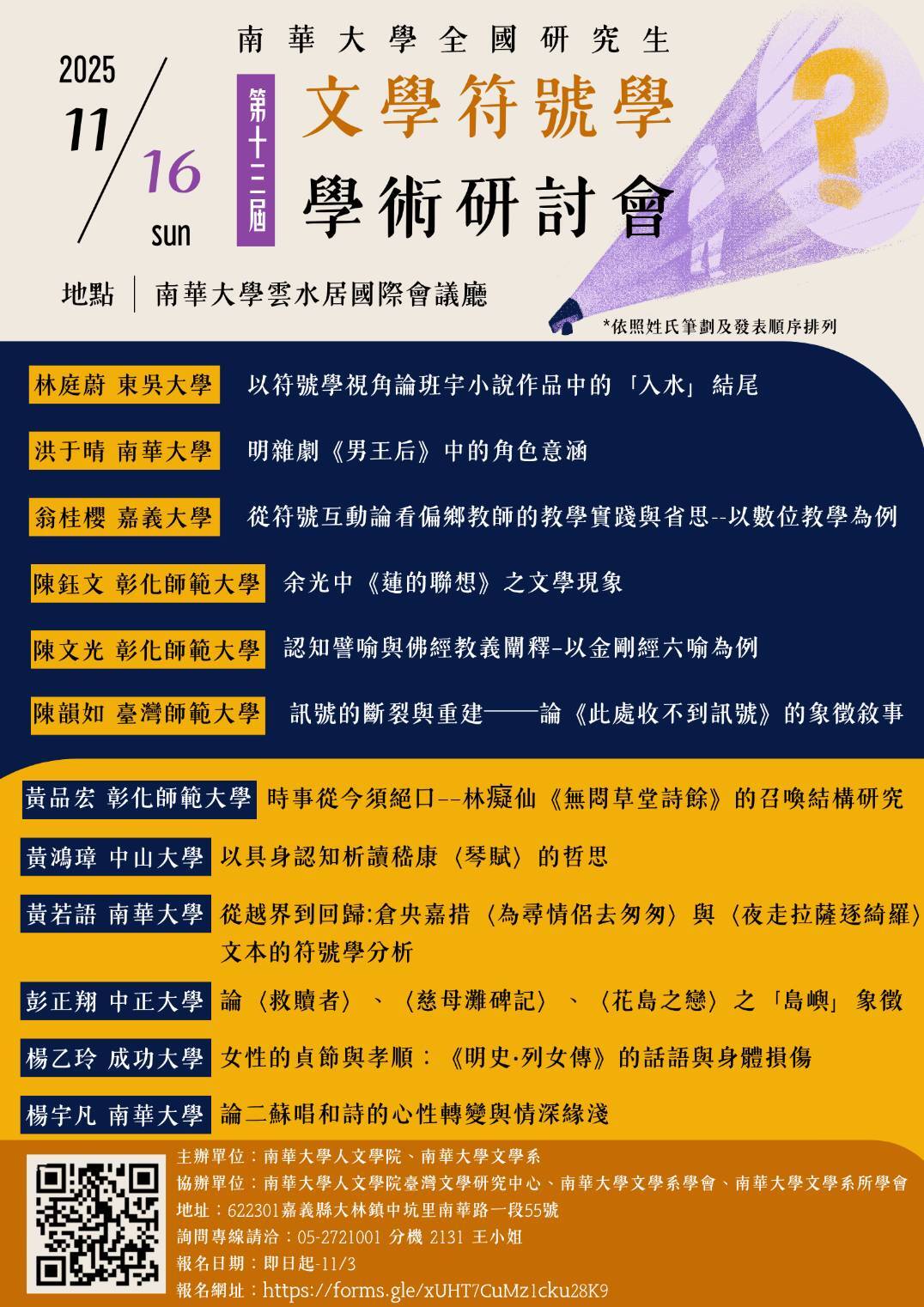南華大學「南華大學全國研究生第13屆文學符號學研討會」