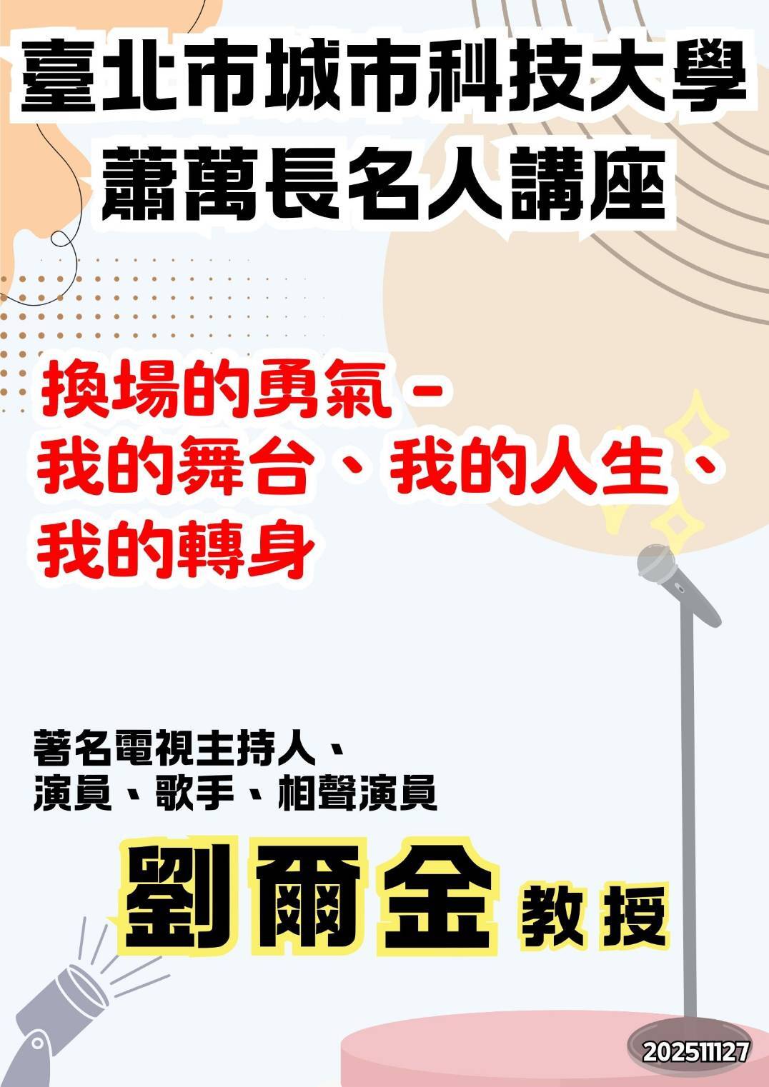 【通識】114年11月27日(四)名人講座邀請電視主持人、歌手、相聲演員劉爾金教授 蒞校演講,歡迎有興趣的師生蒞臨參加!