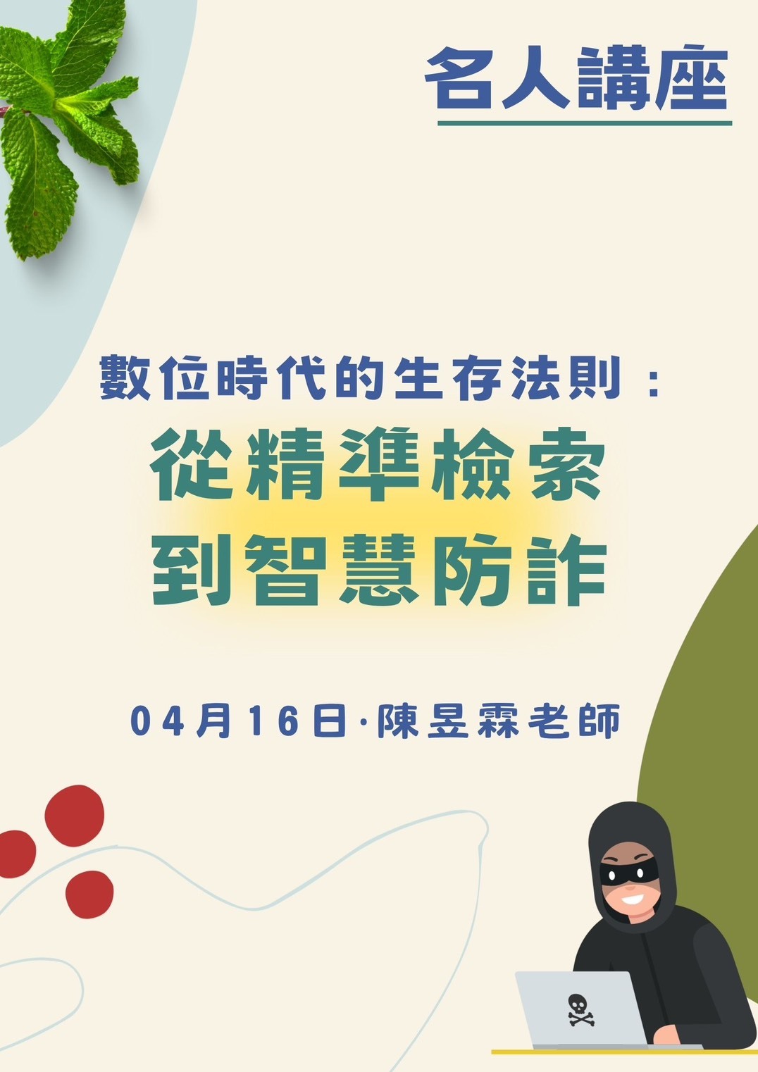講 題:數位時代的生存法則:從精準檢索到智慧防詐